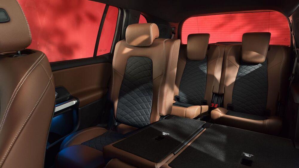 Дизайн салона определяют приборная панель с большим экраном, трубчатые алюминиевые элементы в стиле Off-road, монументальная центральная консоль. Пассажирам второго ряда доступны отсеки для хранения вещей, в один из которых встроен USB-порт, подстаканники. В задней части салона автомобиля можно разместить до 4 детских автокресел. Для этого предусмотрены крепления ISOFIX и ремень TOP-Tether.